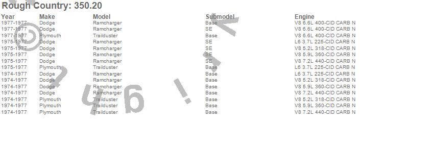 Below is an abbreviated list of applications for the Suspension Lift Kit w/Shocks.Ramcharger, Trailduster, Dodge, Plymouth, 1977, 1976, 1975, 1974