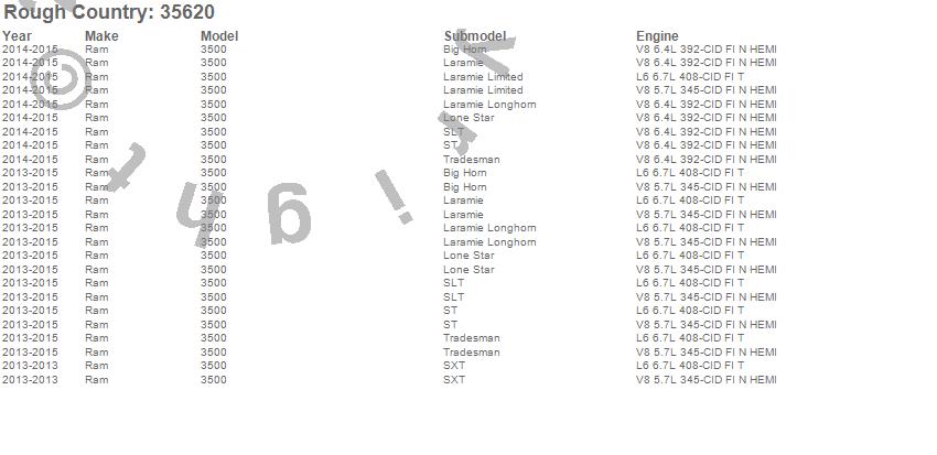 Below is an abbreviated list of applications for the Suspension Lift Kit w/Shocks.3500, Ram, 2015, 2014, 2013