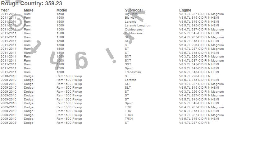 Below is an abbreviated list of applications for the Suspension Lift Kit w/Shocks.1500, Ram 1500, Dodge, Ram, 2011, 2010, 2009