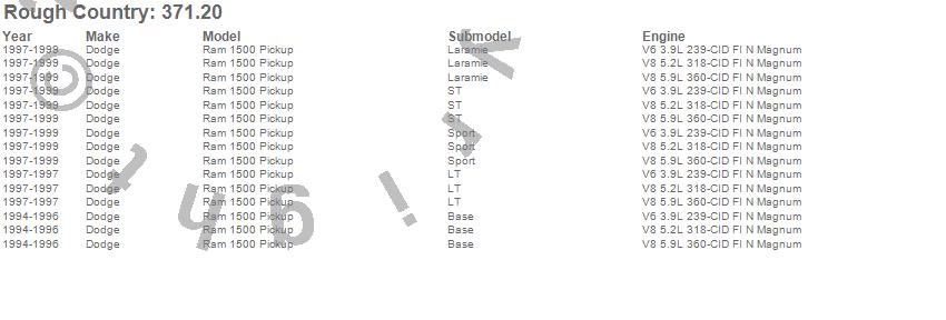 Below is an abbreviated list of applications for the Suspension Lift Kit w/Shocks.Ram 1500, Dodge, 1999, 1998, 1997, 1996, 1995, 1994