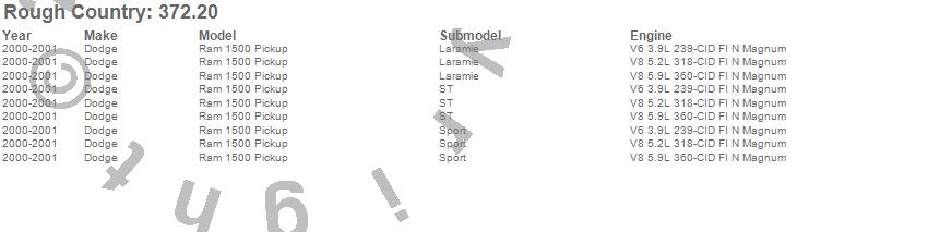 Below is an abbreviated list of applications for the Suspension Lift Kit w/Shocks.Ram 1500, Dodge, 2001, 2000