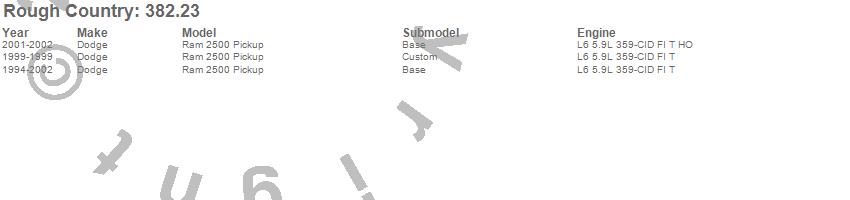 Below is an abbreviated list of applications for the Suspension Lift Kit w/Shocks.Ram 2500, Dodge, 2002, 2001, 2000, 1999, 1998, 1997, 1996, 1995, 1994