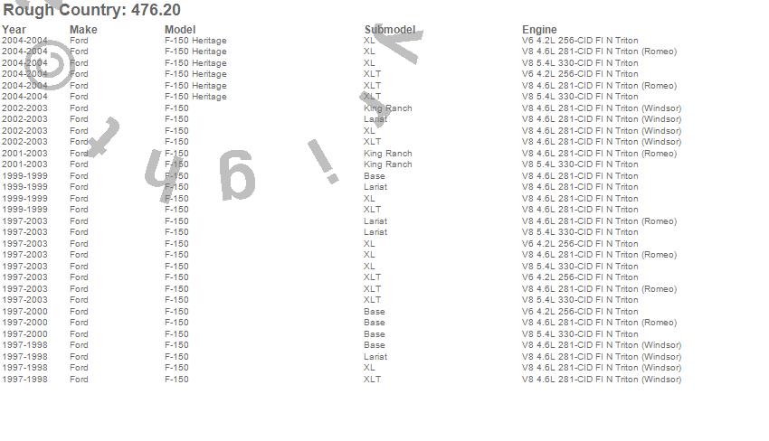 Below is an abbreviated list of applications for the Suspension Lift Kit w/Shocks.F-150, F-150 Heritage, Ford, 2004, 2003, 2002, 2001, 2000, 1999, 1998, 1997