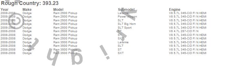 Below is an abbreviated list of applications for the Suspension Lift Kit w/Shocks.Ram 2500, Ram 3500, Dodge, 2008