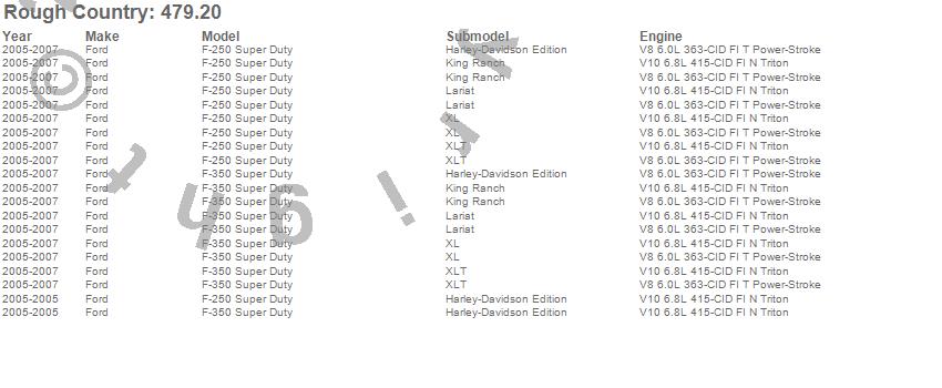 Below is an abbreviated list of applications for the Suspension Lift Kit w/Shocks.F-250 Super Duty, F-350 Super Duty, Ford, 2007, 2006, 2005