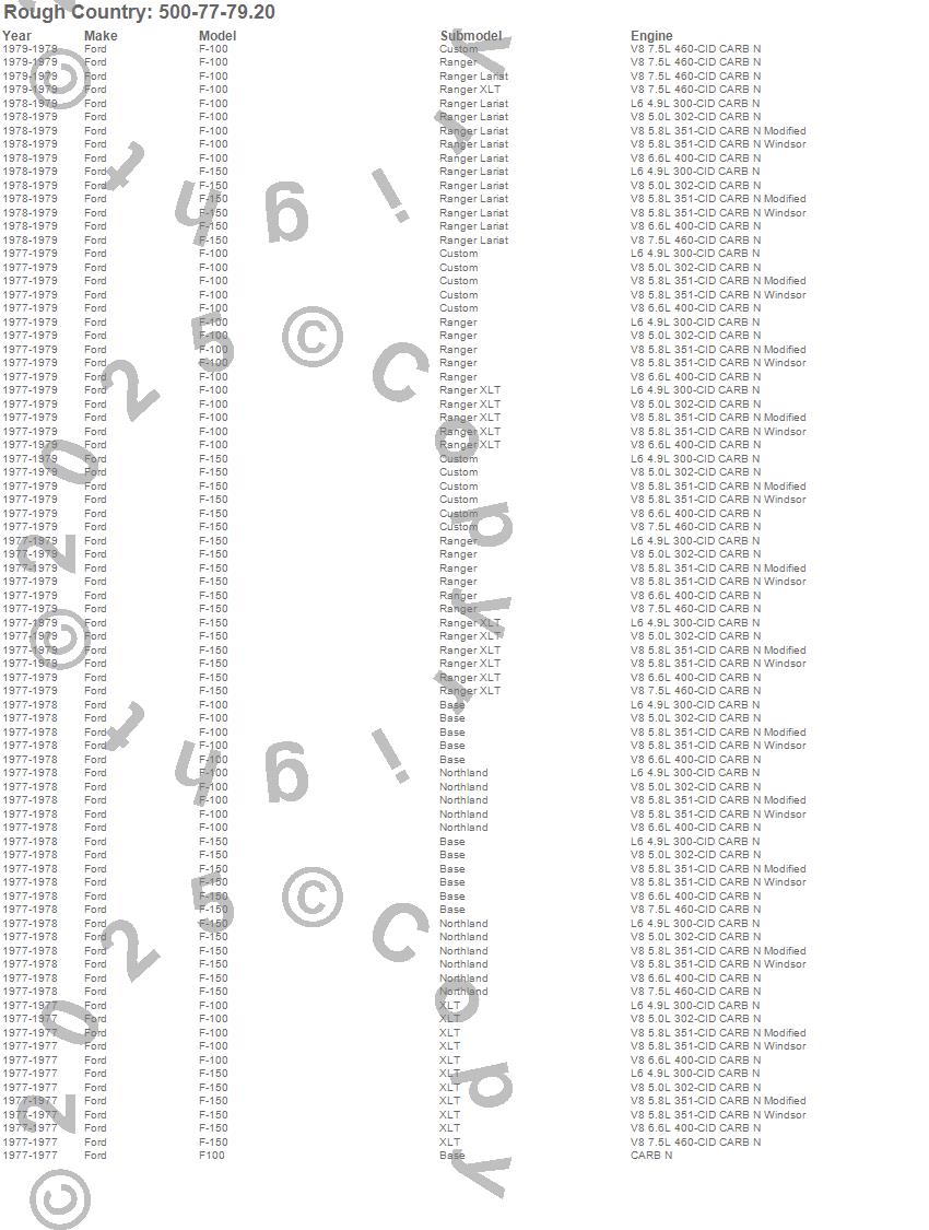 Below is an abbreviated list of applications for the Suspension Lift Kit w/Shocks.F-100, F-150, F100, Ford, 1979, 1978, 1977