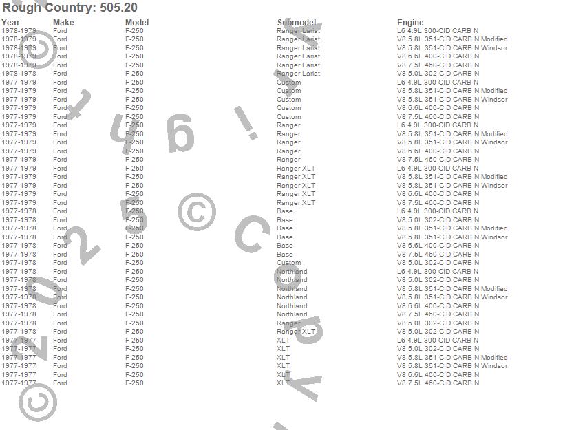 Below is an abbreviated list of applications for the Suspension Lift Kit w/Shocks.F-250, Ford, 1979, 1978, 1977