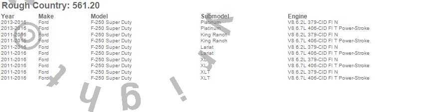 Below is an abbreviated list of applications for the Suspension Lift Kit w/Shocks.F-250 Super Duty, Ford, 2016, 2015, 2014, 2013, 2012, 2011