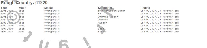 Below is an abbreviated list of applications for the X-Series Suspension Lift Kit w/Shocks.Wrangler (TJ), Jeep, 2006, 2005, 2004, 2003, 2002, 2001, 2000, 1999, 1998, 1997