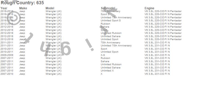 Below is an abbreviated list of applications for the Series II Suspension Lift Kit.Wrangler (JK), Jeep, 2018, 2017, 2016, 2015, 2014, 2013, 2012, 2011, 2010, 2009, 2008, 2007
