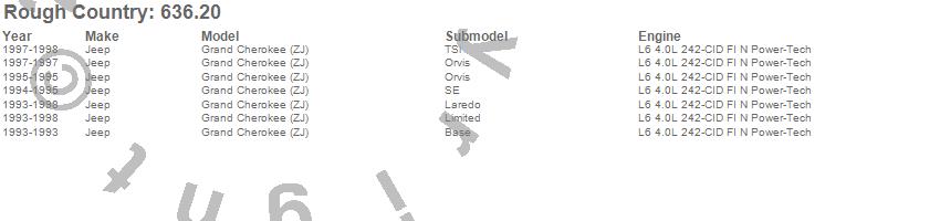 Below is an abbreviated list of applications for the Suspension Lift Kit w/Shocks.Grand Cherokee (ZJ), Jeep, 1998, 1997, 1996, 1995, 1994, 1993