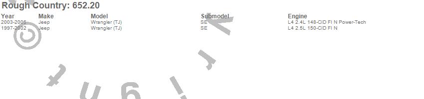 Brand: Rough CountryPart Number: 652.20Lift Kit-Suspension w/Shock Type: 2.5 in. LiftUPC: 843030129484