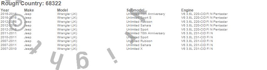 Brand: Rough CountryPart Number: 68322Lift Kit-Suspension w/Shock Type: 6 in. LiftUPC: 843030124977