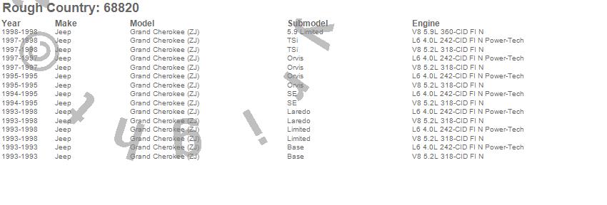 Below is an abbreviated list of applications for the X-Series Suspension Lift Kit w/Shocks.Grand Cherokee (ZJ), Jeep, 1998, 1997, 1996, 1995, 1994, 1993