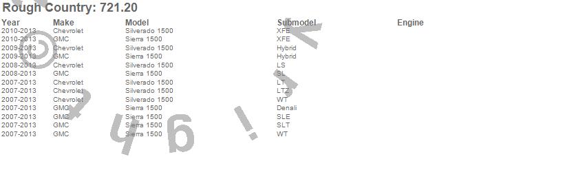 Brand: Rough CountryPart Number: 721.20Lowering Kit Type: UPC: 843030171698