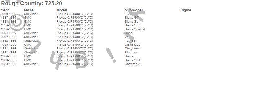 Below is an abbreviated list of applications for the Suspension Lowering Kit.C1500 Pickup, Chevrolet, GMC, 1999, 1998, 1997, 1996, 1995, 1994, 1993, 1992, 1991, 1990, 1989, 1988