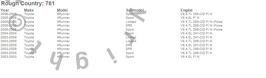 Below is an abbreviated list of applications for the X-REAS Series II Suspension Lift Kit.4Runner, Toyota, 2009, 2008, 2007, 2006, 2005, 2004, 2003