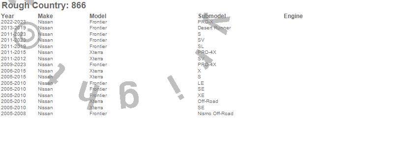 Below is an abbreviated list of applications for the Lift Shackles.Frontier, Xterra, Nissan, 2023, 2022, 2021, 2020, 2019, 2018, 2017, 2016, 2015, 2014, 2013, 2012, 2011, 2010, 2009, 2008, 2007