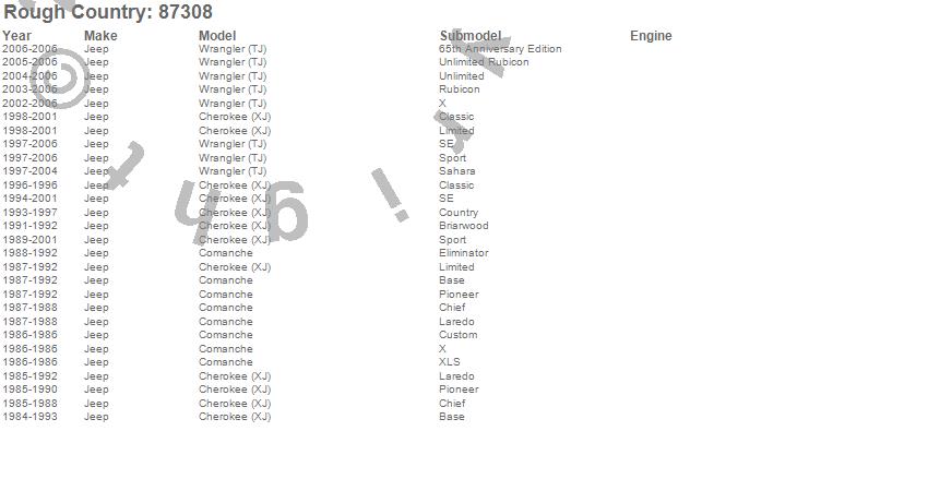 Below is an abbreviated list of applications for the Dual Steering Stabilizer Kit.Cherokee (XJ), Comanche, Wrangler (TJ), Jeep, 2006, 2005, 2004, 2003, 2002, 2001, 2000, 1999, 1998, 1997, 1996, 1995, 1994, 1993, 1992, 1991