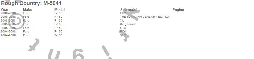 Brand: Rough CountryPart Number: M-5041Floor Mat Set Type: Front - 2 pc.UPC: 843030118150