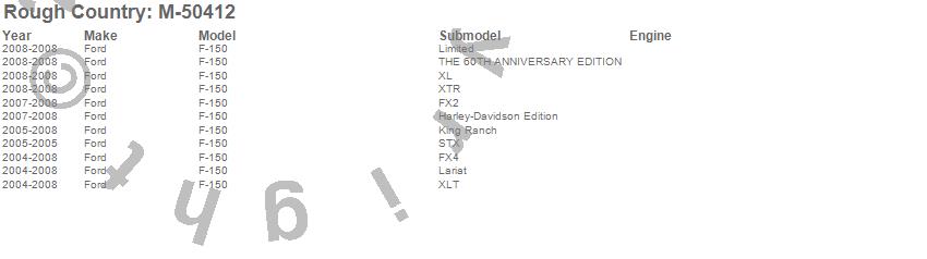 Below is an abbreviated list of applications for the Heavy Duty Floor Mats.F-150, Ford, 2008, 2007, 2006, 2005, 2004