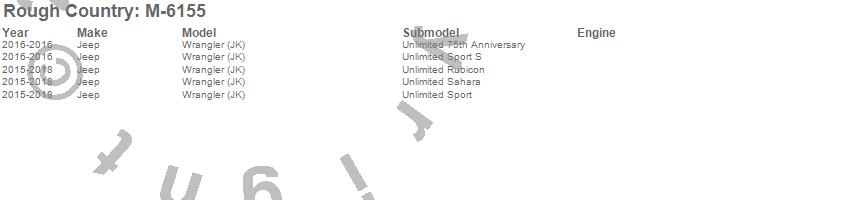 Brand: Rough CountryPart Number: M-6155Cargo Area Liner Type: UPC: 843030118358