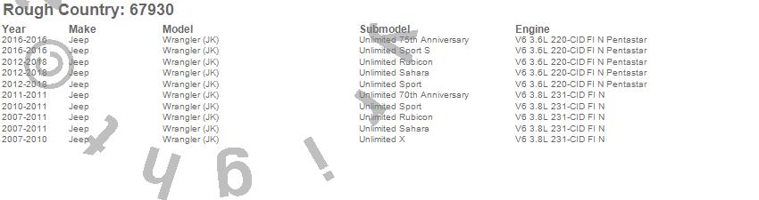 Brand: Rough CountryPart Number: 67930Lift Kit-Suspension w/Shock Type: 2.5 in. LiftUPC: 843030129057