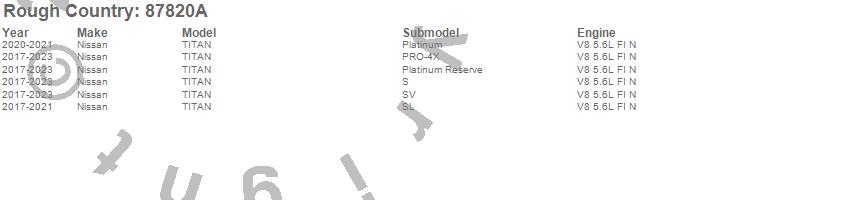 Below is an abbreviated list of applications for the Suspension Lift Kit w/Shock.TITAN, Nissan, 2023, 2022, 2021, 2020, 2019, 2018, 2017