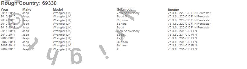 Below is an abbreviated list of applications for the Suspension Lift Kit w/Shocks.Wrangler (JK), Jeep, 2018, 2017, 2016, 2015, 2014, 2013, 2012, 2011, 2010, 2009, 2008, 2007