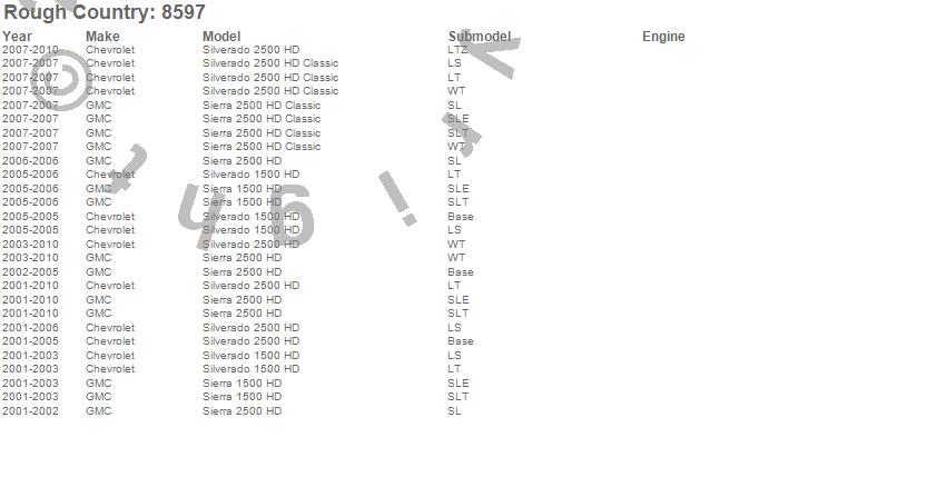 Brand: Rough CountryPart Number: 8597Torsion Key Type: FK or FF Codes - Easy Bolt-On InstallationUPC: 843030146467