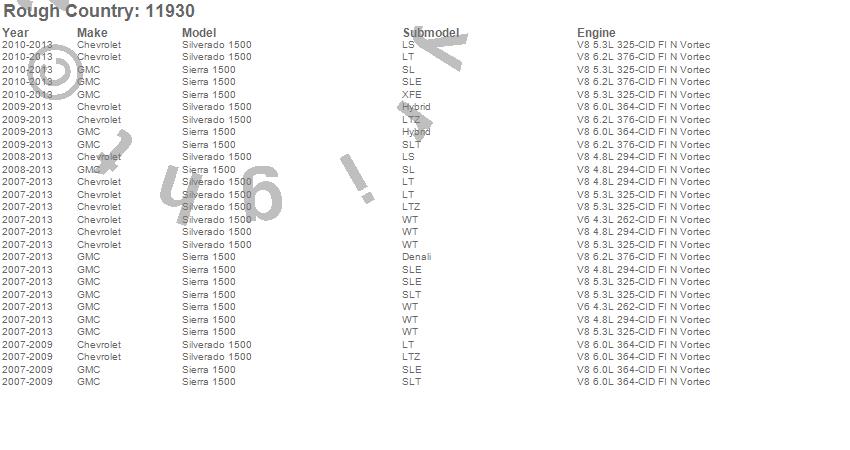 Below is an abbreviated list of applications for the Suspension Lift Knuckle Kit w/Shocks.Sierra 1500, Silverado 1500, Chevrolet, GMC, 2013, 2012, 2011, 2010, 2009, 2008, 2007