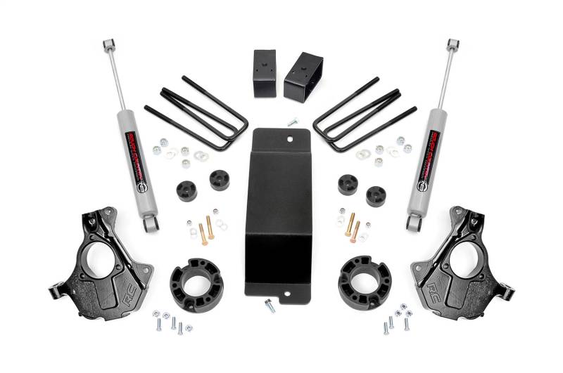 Brand: Rough CountryPart Number: 11930Lift Kit-Suspension w/Shock Type: 3.5 in. Lift - Incl. Strut Spacer - Knuckles - Diff. Drop Spacer/Skid Plate - Blocks - U-Bolts - Hardware - Rear Premium N3 ShocksUPC: 843030153939