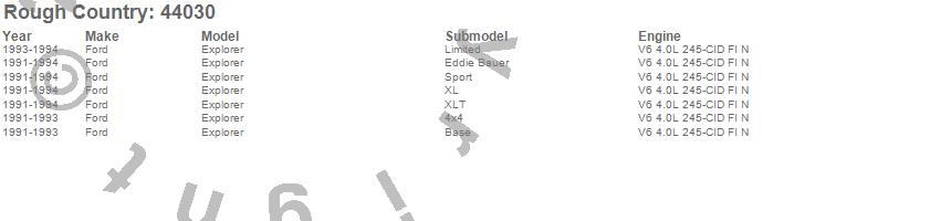 Below is an abbreviated list of applications for the Suspension Lift Kit w/Shocks.Explorer, Ford, 1994, 1993, 1992, 1991