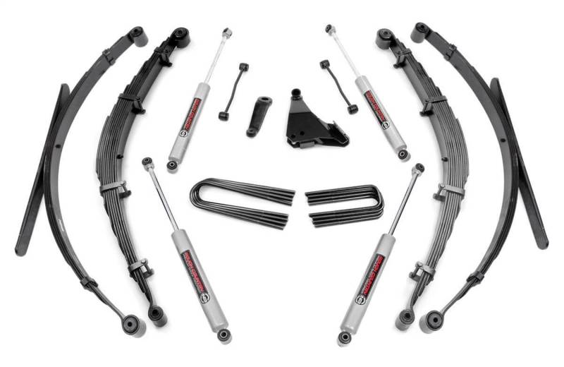 Brand: Rough CountryPart Number: 49230Lift Kit-Suspension w/Shock Type: 4 in. Lift - Incl. Leaf Springs - Trackbar/I-Beam Drop Brkt - Pitman Arm - Blocks - U-Bolts Hardware - Front and Rear Premium N3 ShocksUPC: 843030150563