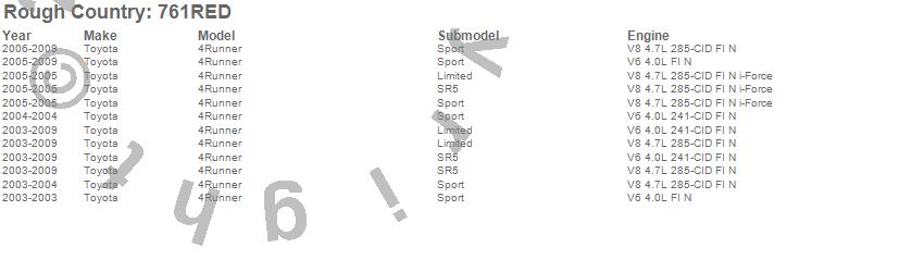 Below is an abbreviated list of applications for the Series II Suspension Lift System.4Runner, Toyota, 2009, 2008, 2007, 2006, 2005, 2004, 2003