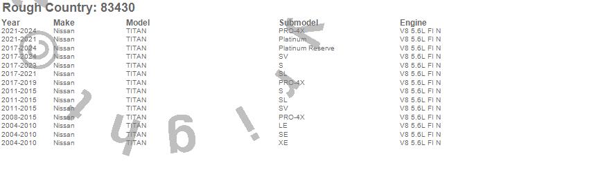 Below is an abbreviated list of applications for the Bolt-On Lift Kit w/Shocks.TITAN, Nissan, 2024, 2023, 2022, 2021, 2020, 2019, 2018, 2017, 2015, 2014, 2013, 2012, 2011, 2010, 2009, 2008, 2007, 2006