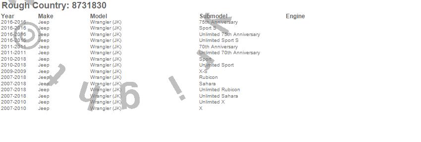 Below is an abbreviated list of applications for the N3 Dual Steering Stabilizer.Wrangler (JK), Jeep, 2018, 2017, 2016, 2015, 2014, 2013, 2012, 2011, 2010, 2009, 2008, 2007