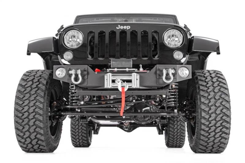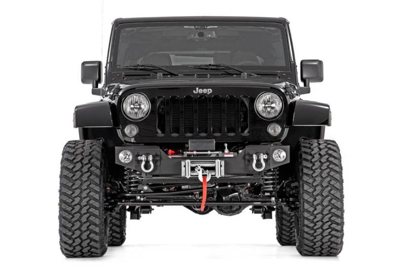 Buy this Front Hybrid Stubby Bumper Rough Country 1062 Incl. Winch Mounting Plate - Side Caps - Hardware - Fog Light Mounts - Black Carbon Powdercoating here at SVCustoms.com an authorized Rough Country Bumper- Front dealer and distributor.