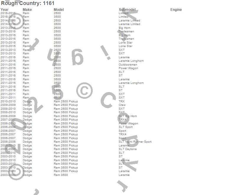 Below is an abbreviated list of applications for the Carrier Bearing Shim Kit.2500, 3500, Ram 2500, Ram 3500, Dodge, Ram, 2016, 2015, 2014, 2013, 2012, 2011, 2010, 2009, 2008, 2007, 2006, 2005, 2004, 2003