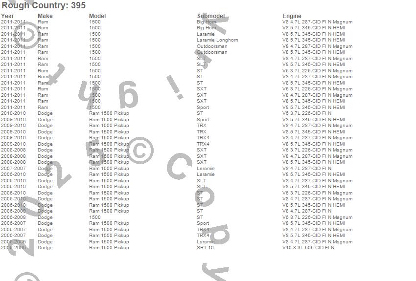 Below is an abbreviated list of applications for the Front Leveling Kit.1500, Ram 1500, Dodge, Ram, 2011, 2010, 2009, 2008, 2007, 2006