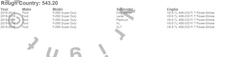 Brand: Rough CountryPart Number: 543.20Lift Kit-Suspension w/Shock Type: 6 in. LiftUPC: 843030127756
