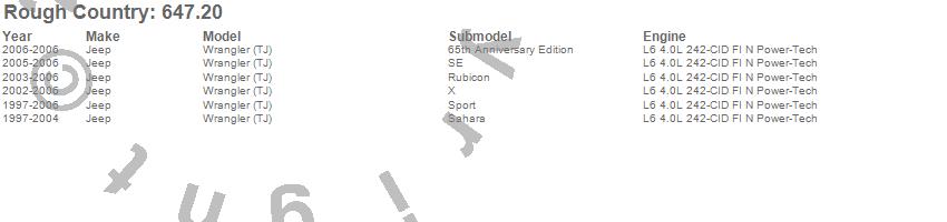 Below is an abbreviated list of applications for the Combo Suspension Lift Kit w/Shocks.Wrangler (TJ), Jeep, 2006, 2005, 2004, 2003, 2002, 2001, 2000, 1999, 1998, 1997