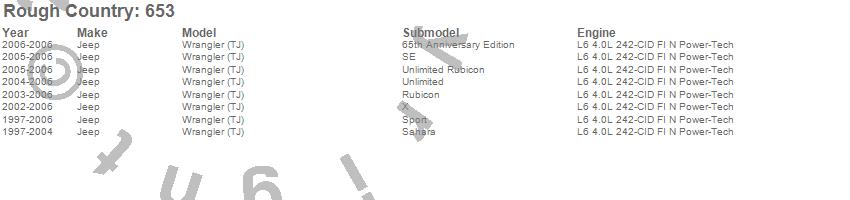 Below is an abbreviated list of applications for the Suspension Lift Kit.Wrangler (TJ), Jeep, 2006, 2005, 2004, 2003, 2002, 2001, 2000, 1999, 1998, 1997