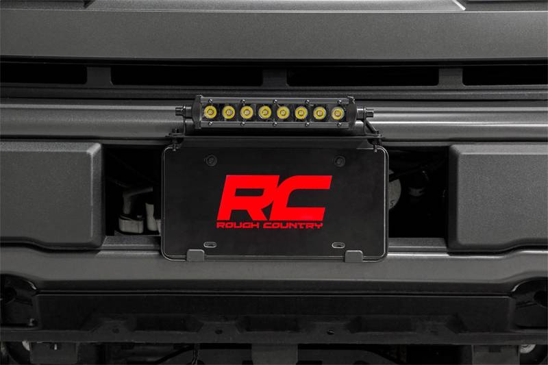Buy this Cree Black Series LED License Plate Mount Kit Rough Country 70183 Incl. 8 in. Light Bar - License Plate Bracket - Wiring Harness - Light Cover - Light Mounting Brackets here at SVCustoms.com an authorized Rough Country License Plate Light Kit dealer and distributor.