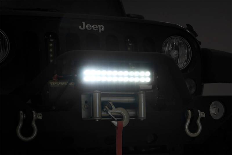 Brand: Rough CountryPart Number: 70912BLLED Light Bar Type: 12 in. - Dual Row - 5760 Lumens - 72 Watts - Spot/Flood Beam - IP67 Rating - Incl. Wire Harness - SwitchUPC: 843030121747