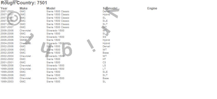 Below is an abbreviated list of applications for the Lifted Knuckles.Sierra 1500, Sierra 1500 Classic, Silverado 1500, Chevrolet, GMC, 2007, 2006, 2005, 2004, 2003, 2002, 2001, 2000, 1999