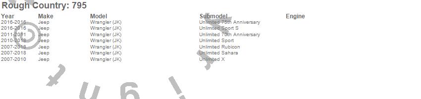Brand: Rough CountryPart Number: 795Skid Plate Type: 3/16 in. Thick Steel - Incl. Mount Brackets HardwareUPC: 843030134181