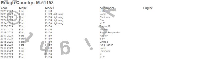 Brand: Rough CountryPart Number: M-51153Floor Mat Set Type: Front And Rear - 3 pc. - Bench SeatsUPC: 843030141165