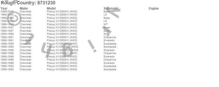 Below is an abbreviated list of applications for the Steering Stabilizer.K2500 Pickup, K3500 Pickup, V3500 Pickup, Chevrolet, 2000, 1999, 1998, 1997, 1996, 1995, 1994, 1993, 1992, 1991, 1990, 1989, 1988