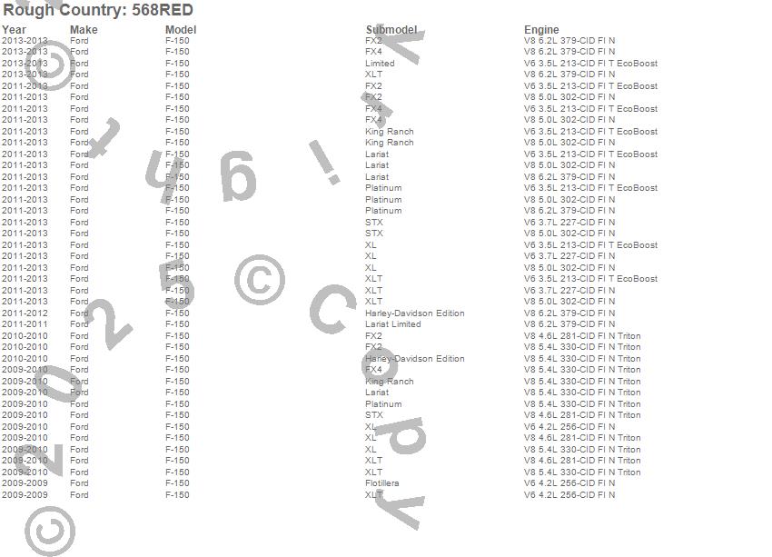 Below is an abbreviated list of applications for the Front Leveling Kit.F-150, Ford, 2013, 2012, 2011, 2010, 2009